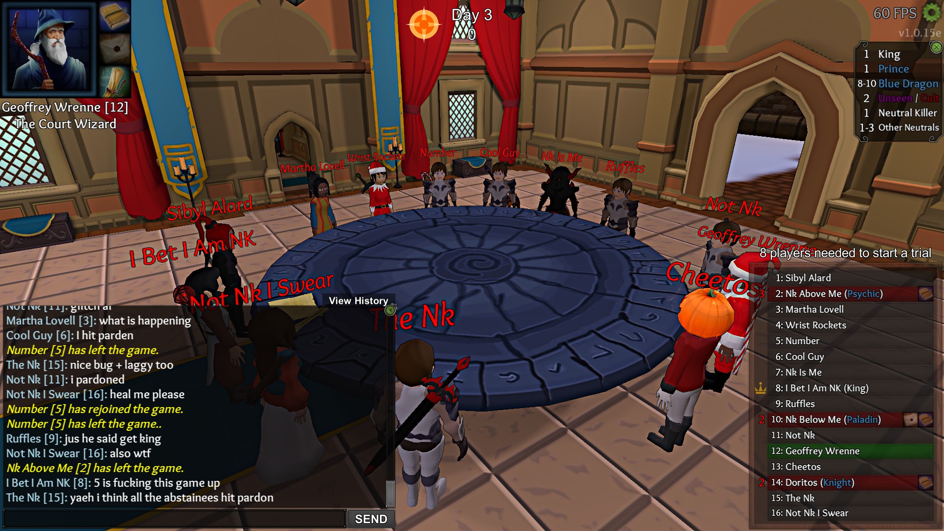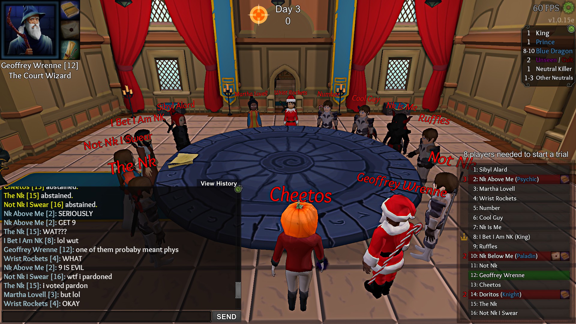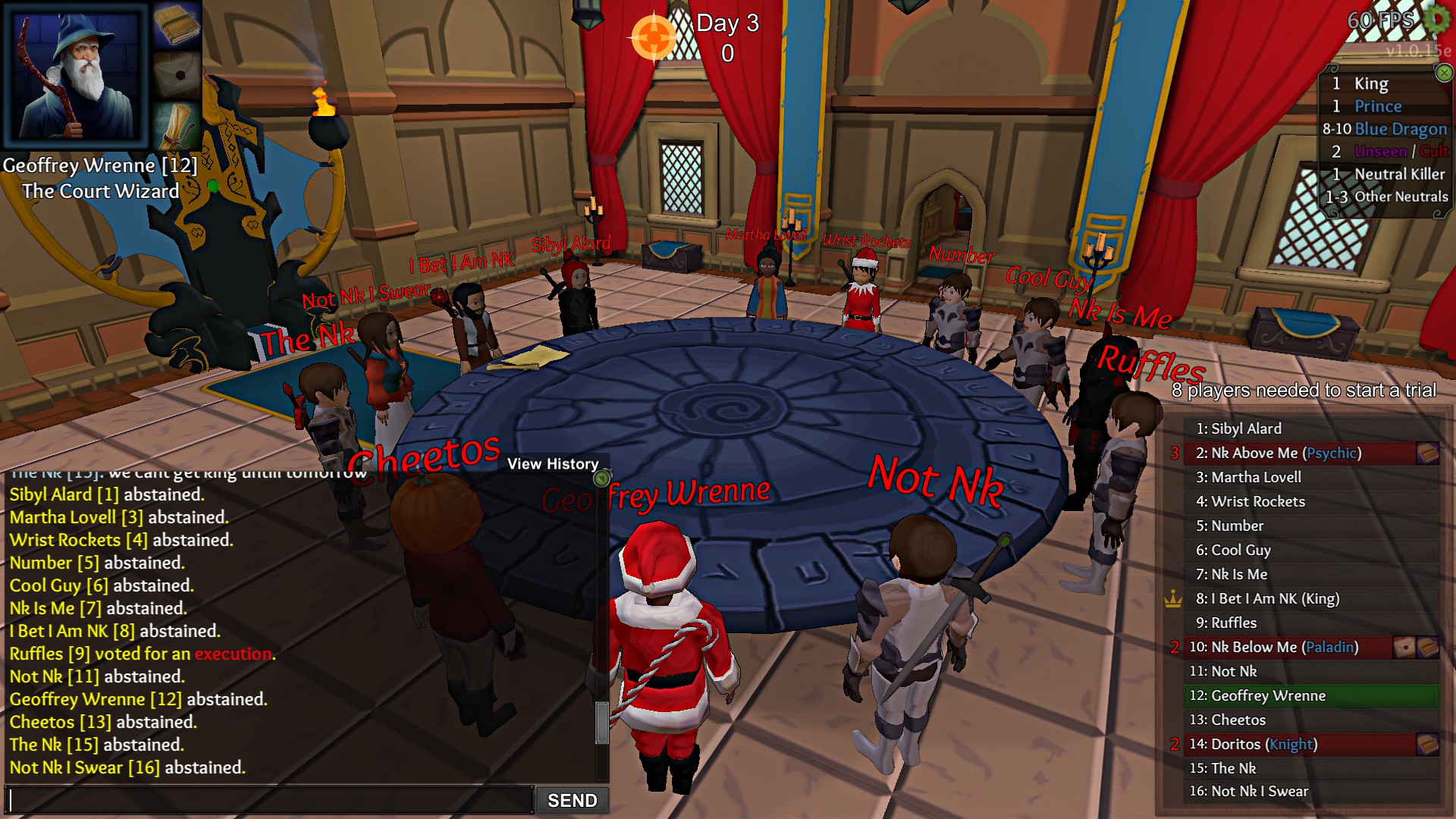 we put somebody up because he claimed physician but couldn’t be. he explained he meant to write psy (psychic) everybody confirmed his logs and we all mostly pardoned except for one guy. But everybody that hit pardon had their votes changed to abstain. So there was only one non abstaining vote which got the confirmed psychic executed. I took a screenshot of the votes and some of the chat that happened right afterwards.