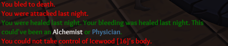 So Herbalist case overruled. The fact it said he Bled to death before the heal makes me thing something is wrong with the order of the actions. People die from bleeding before someone can save them. (that’s only my guess though)