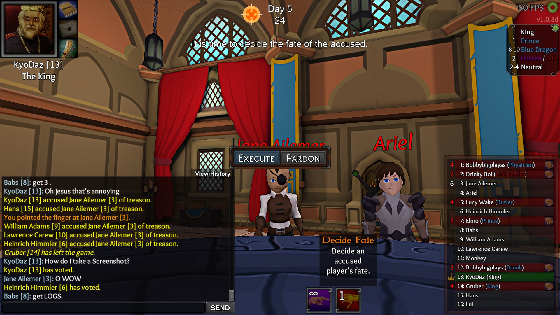 Vote someone up as king, press Execute and decide fate will still be blanked out.