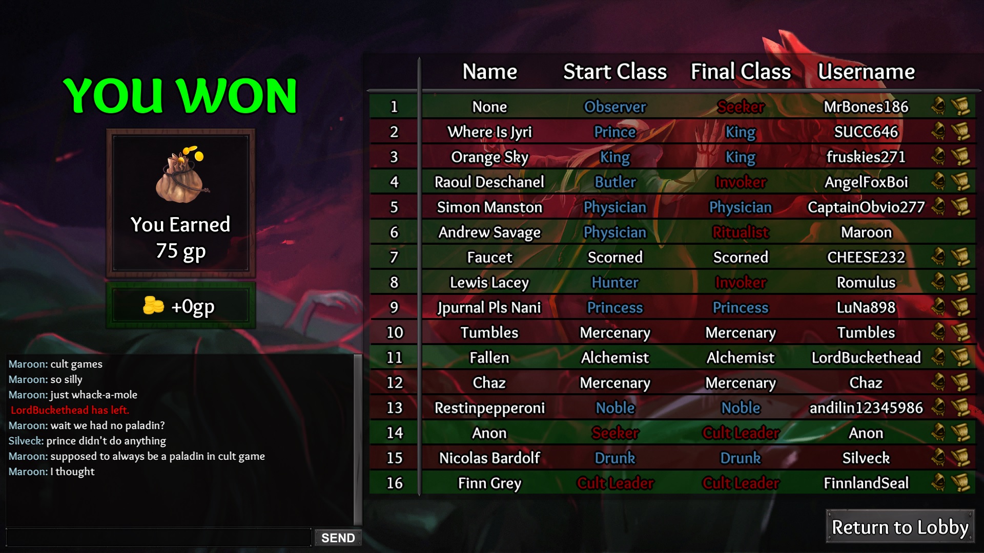 At least if the wiki is correct, there should always be a paladin guaranteed in Cult games.
