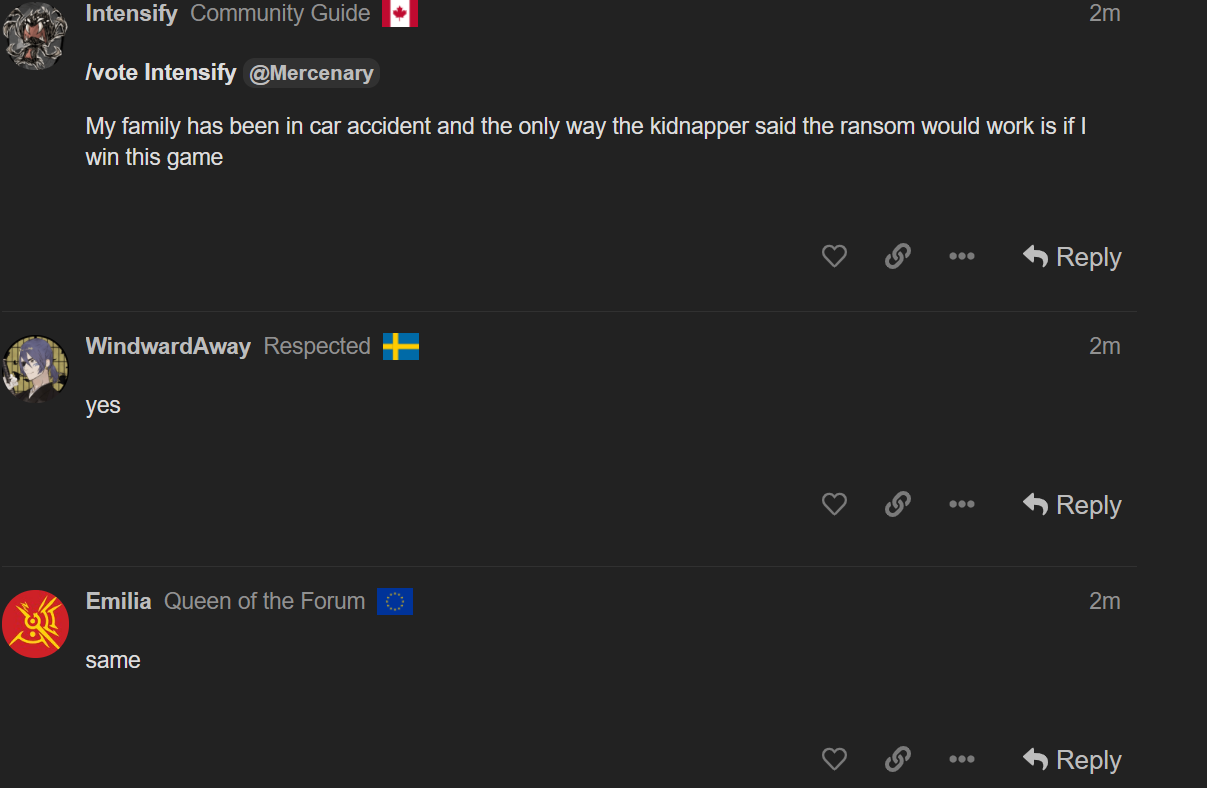 | Not voting | eevee, Whysper, Emilia | 3 |